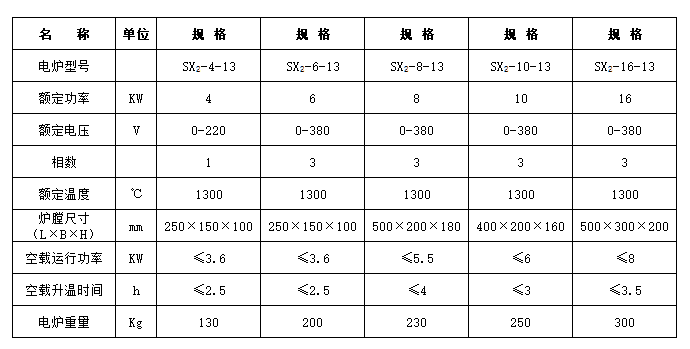 SX2系列高温箱式电阻炉系周期作业式,其额定功率4-16KW。以硅碳棒为加热元件,最高工作温度1300℃,供实验室、工矿企业、科研单位等作合金钢的热处理及金属烧结、溶解、分析等高温加热之用。